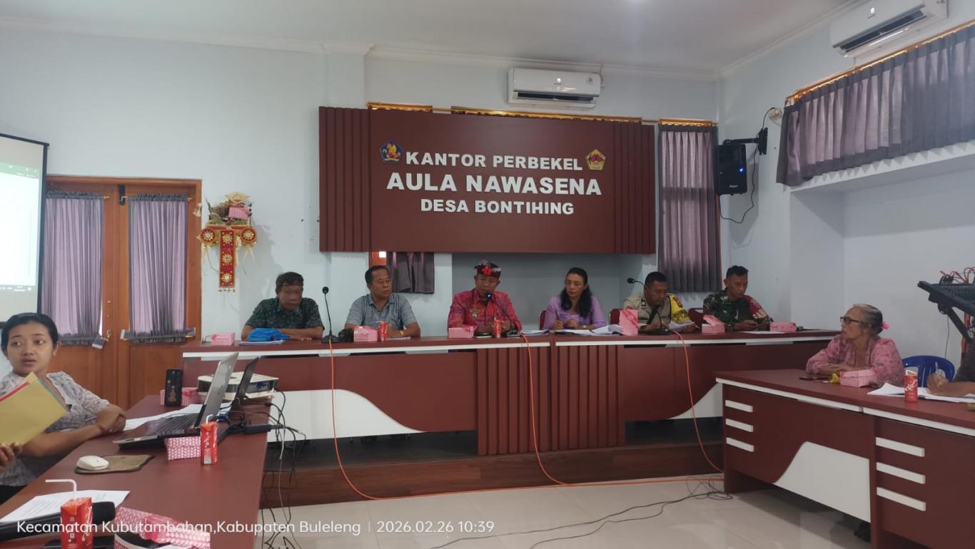 Kegiatan ini dihadiri oleh Perbekel Desa Bontihing beserta Perangkat Desa, Ketua BPD Desa Bontihing beserta anggota, Ketua LPM Desa Bontihing beserta anggota, Babinkamtibmas Desa Bontihing, Babinsa Desa Bontihing dan Manager Bumdes Desa Bontihing.